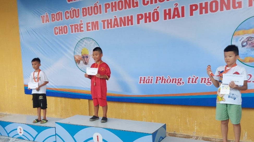Tham dự giải Bơi có em Vũ Bình Minh - học sinh lớp 3A trường Tiểu học Minh Đức đoạt giải Nhì bộ môn Bơi ngửa cấp thành phố.