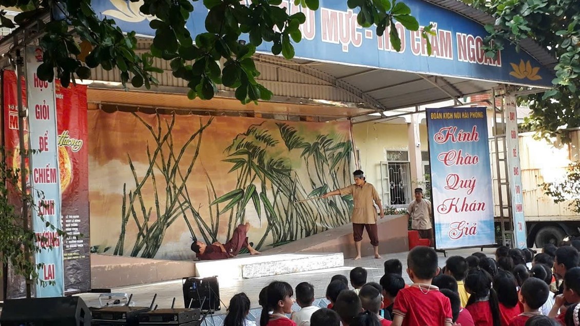 Nhằm tuyên truyền các hoạt động kỷ niệm 70 năm Ngày quân và dân Tiên Lãng anh dũng phá càn thắng lợi (28/8/1953 - 28/8/2023), chiều ngày 17/8/2023, Trung tâm văn hóa thông tin huyện Tiên Lãng phối kết hợp cùng Sở Văn hóa Thông tin Hải Phòng tổ chức công diễn vở kịch nói “ Mặt trời quê hương”, chuyển thể từ truyện ngắn cùng tên của Nhà văn Xuân Sách tại trường Tiểu học Minh Đức, huyện Tiên Lãng.